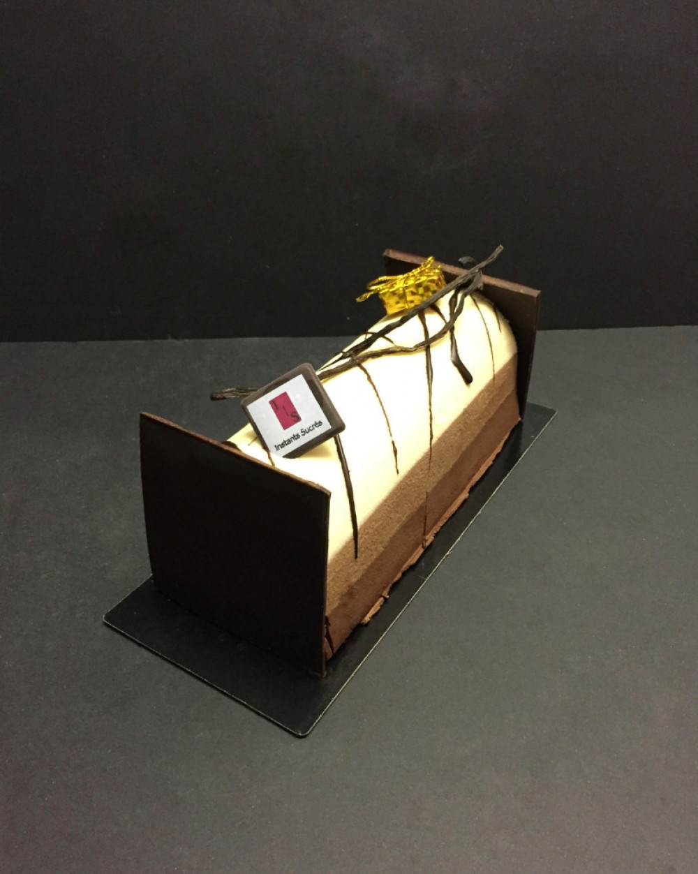 L’alliance du chocolat blanc, du chocolat au lait et du chocolat noir, sur un délicieux biscuit moelleux au chocolat.