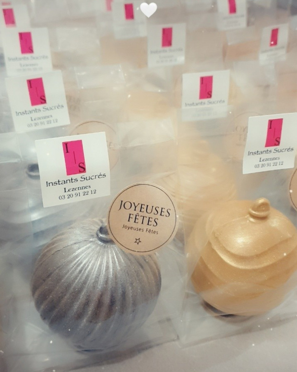Boule de Noël en chocolat. Une déco de table raffinée, une gourmandise pour vos invités.